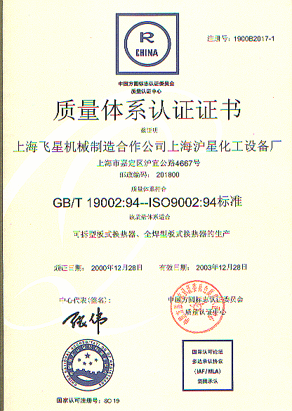 学习、工作、与居住的现代化花园式城市。 上海沪星化工设备有限公司(上海沪星化工设备厂)从八十年代至今,专门从事各类型板式换热器的专业制造公司,是中国化工勘查设计协会确定的定点产品生产企业。本公司具有较强的研制开发 、生产制造各类型板式换热器的实力和推广应用的经验。有完善的生产过程和产品质量控制手段和优质的产品售前,售后服务。 我公司生产的BR可拆型系列板式换热器在一九九五年获得中国高新技术,新产品博览会银奖。公司于二零零零年通过ISO9002国际质量 体系认证。 我公司生产的各类型板式换热器,在石油化工(双氧水、二甲醚、甲醇等工业)、化肥冶金、医药、机械制造、食品、纺织、橡胶、供暖、制冷等行业得到广泛的应用。以满足加热 、冷却、冷凝特别是低位能的回收等各种工况的要求。 值此,公司总经理钱加宁率全体员工遵照沪星公司的质量方针:“精益求精是沪星的一贯宗旨,用户满意是沪星永恒的追求”沪星公司将一如既往竭诚为新老客户提供优质产品和最优良的服务。 附:各类证书
